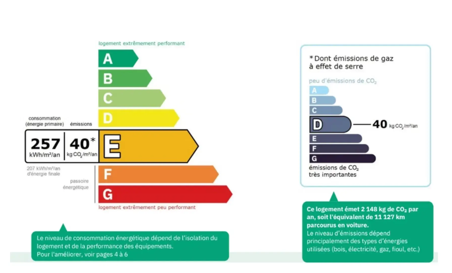 Classe ÉNERGIE : E et Classe CLIMAT : D
