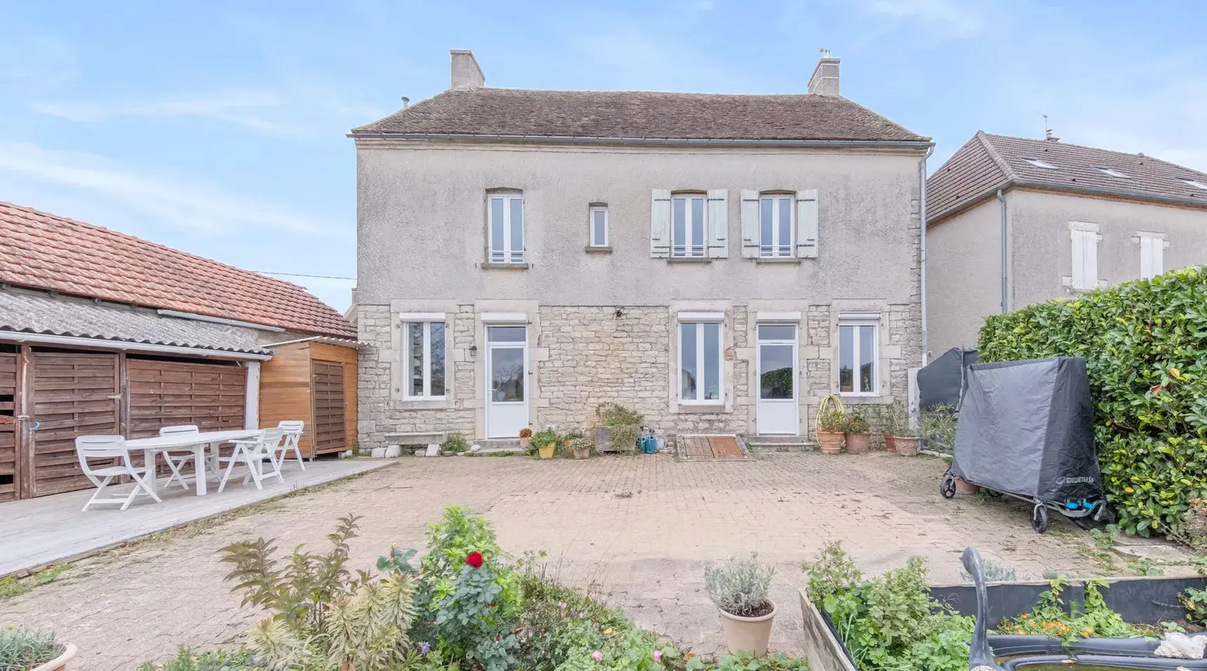 Le terrain de 3 500 m², arboré et sans vis-à-vis, permet d’envisager différents aménagements : piscine, potager, espaces de loisirs ou de détente.