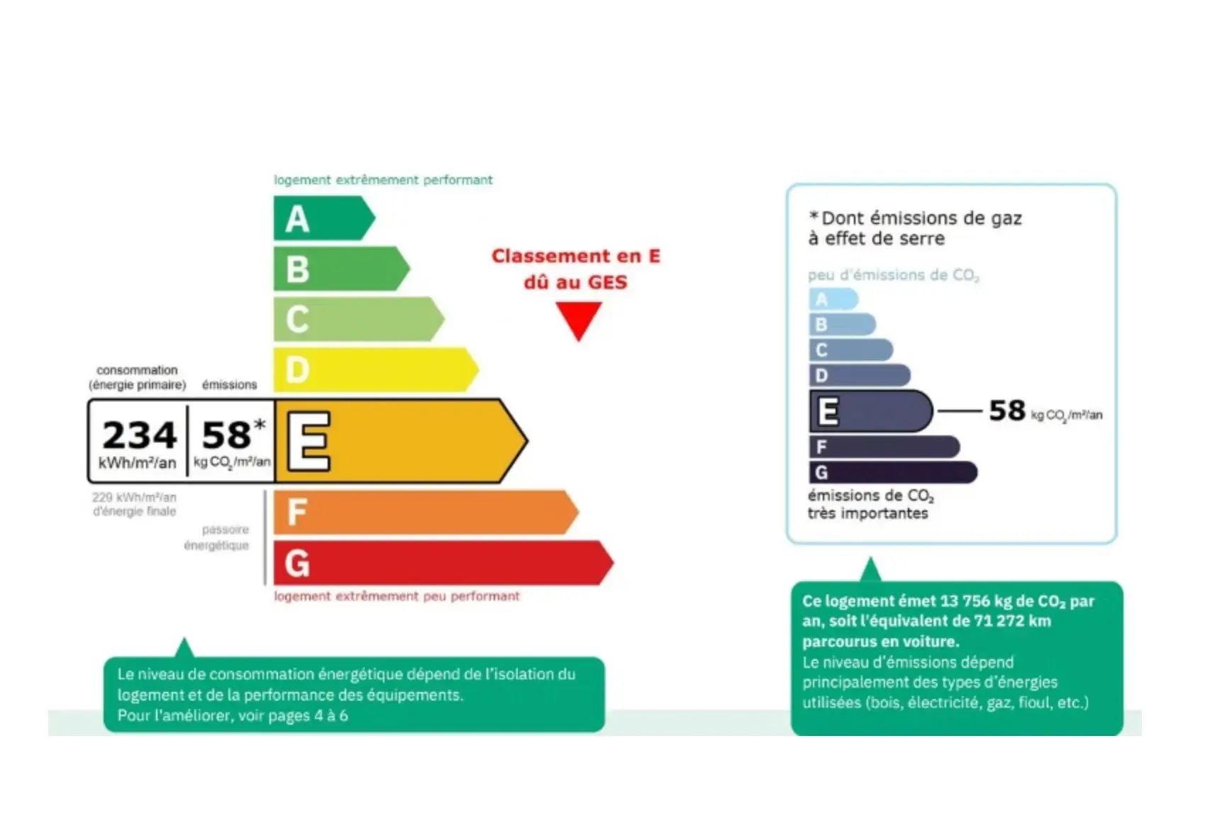 Classe ÉNERGIE : E et Classe CLIMAT : E